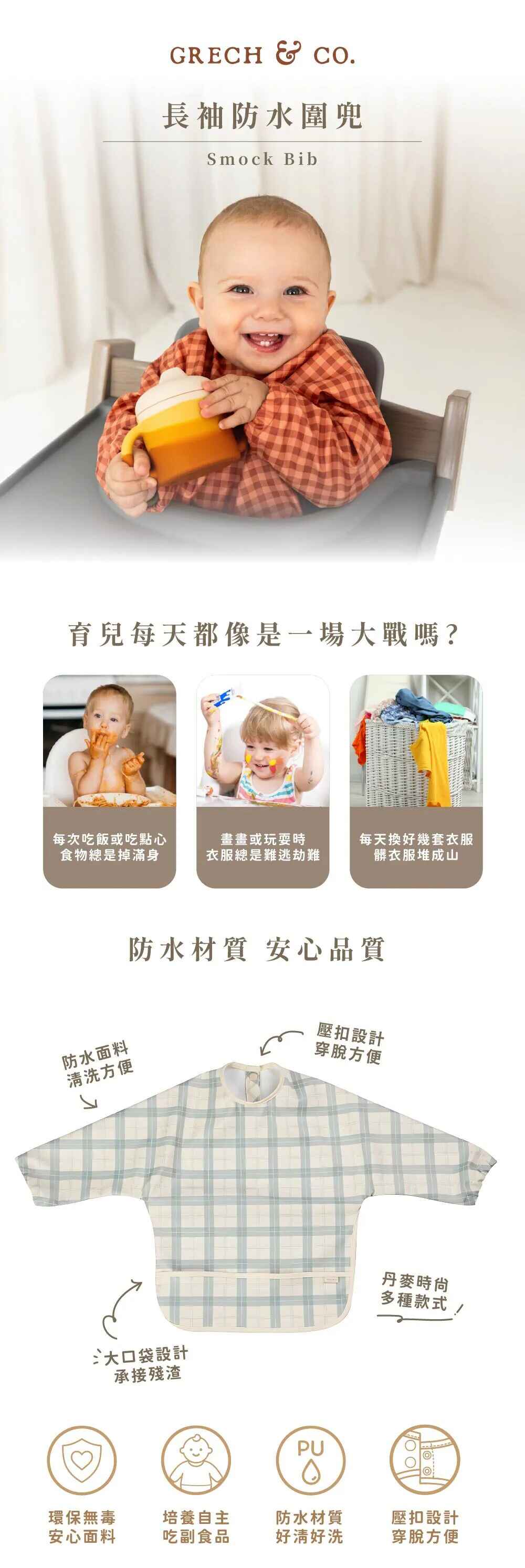 尺寸:長40CM / 胸寬27CM / 袖長29CM適用年齡:6個月-2歲材質:PU材質產地:丹麥設計 / 中國製造