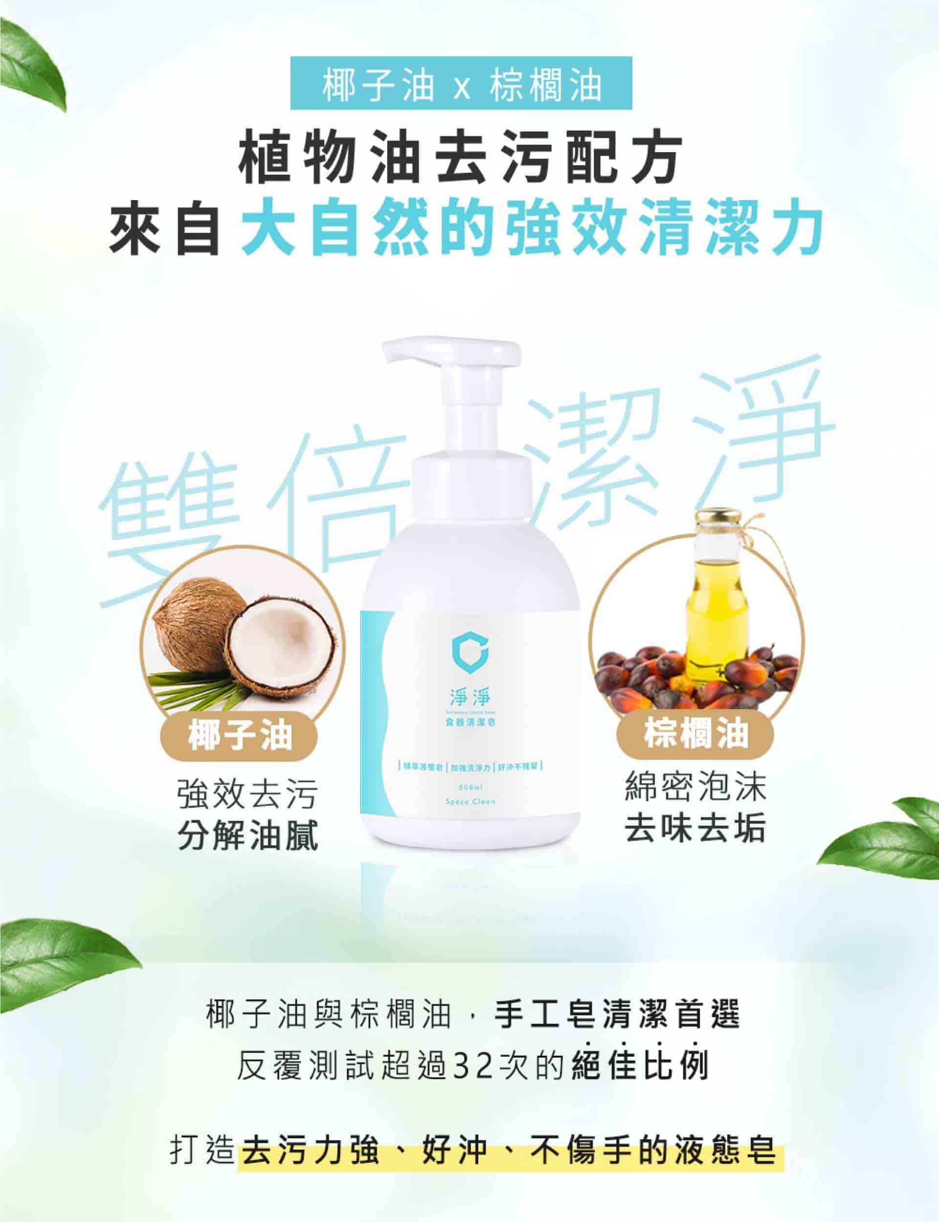 食器清潔皂選用「椰子油」和「棕櫚油」2 種植物油成分,