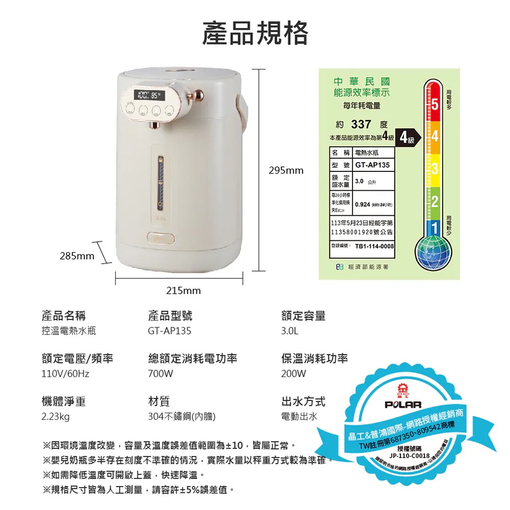 【義大利Giaretti 珈樂堤】3L控溫電熱水瓶(GT-AP135)