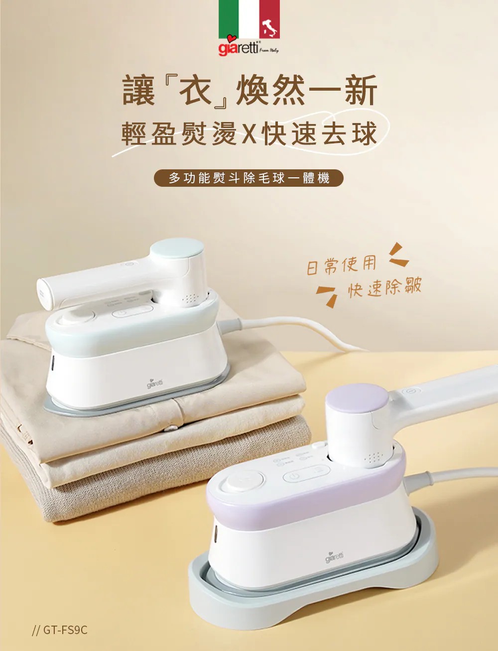【義大利 Giaretti珈樂堤】多功能掛燙|除毛球|熨斗一體機(GT-FS9C)