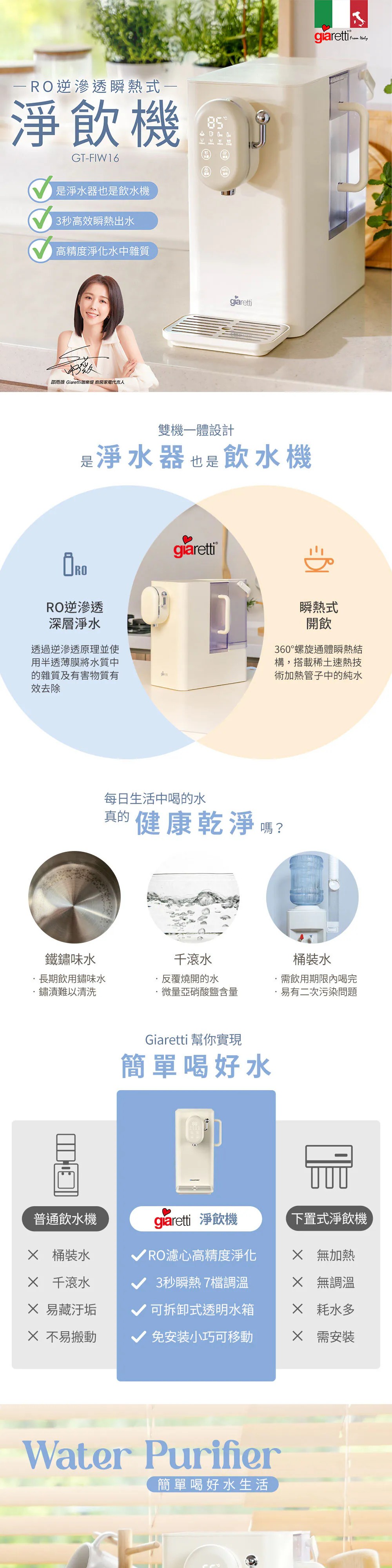 【義大利Giaretti 珈樂堤】RO逆滲透瞬熱式淨飲機(GT-FIW16)
