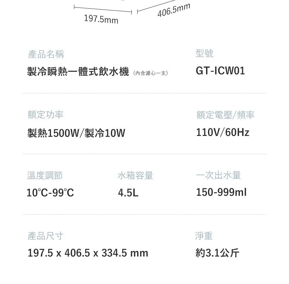 【義大利 Giaretti珈樂堤】製冷瞬熱一體飲水機+贈兩入濾芯(GT-ICW01)
