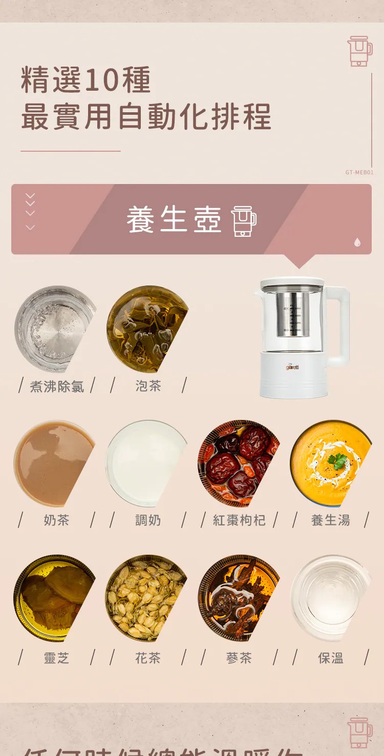 【義大利Giaretti珈樂堤】全自動智能美型二合一調理養生機/養生壺(GT-MEB01-SET) 豪華全配雙壺組合