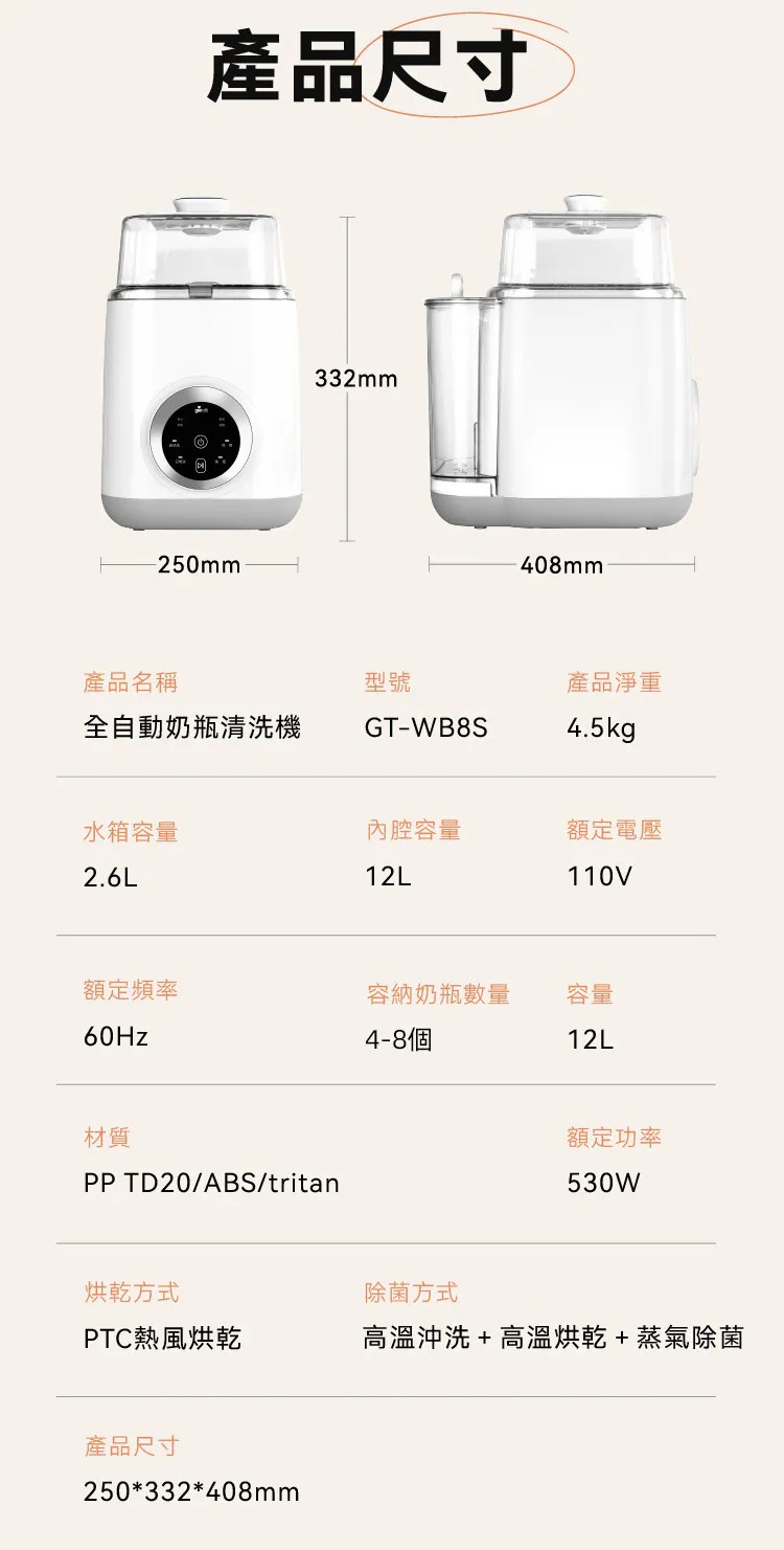 【義大利Giaretti 珈樂堤】12L全自動奶瓶清洗機(GT-WB8S)