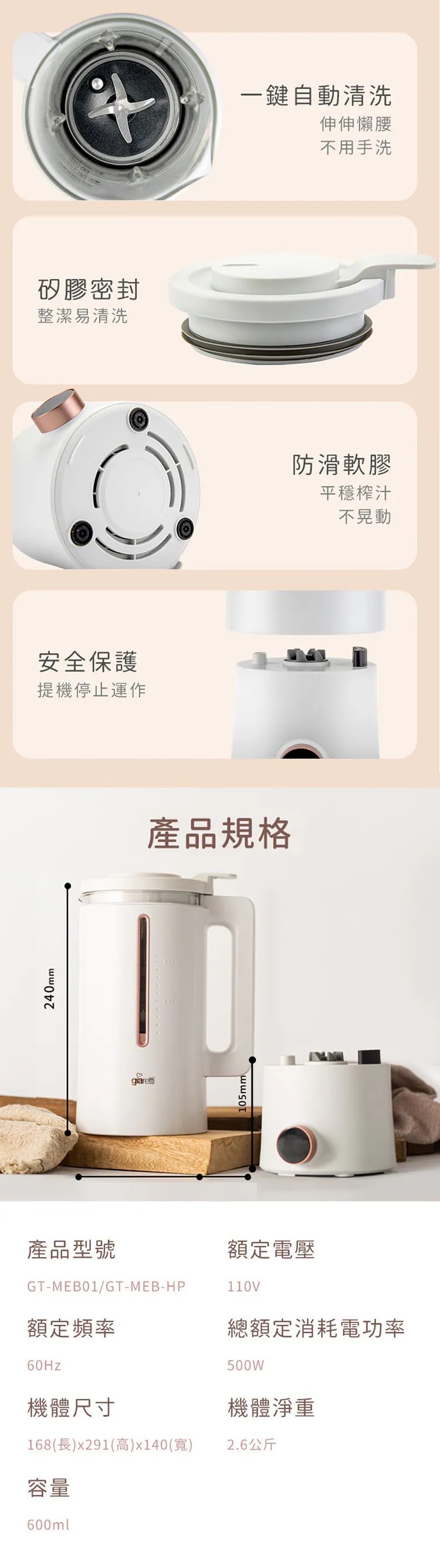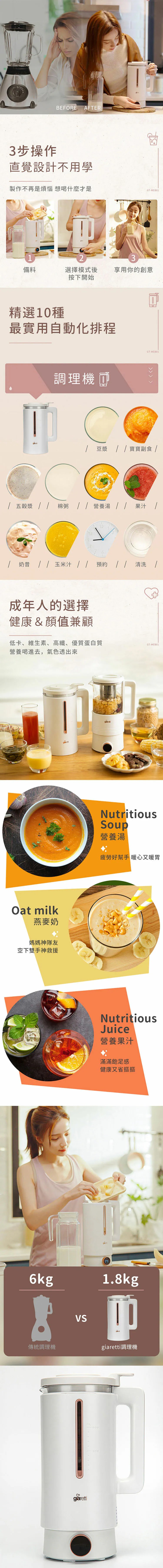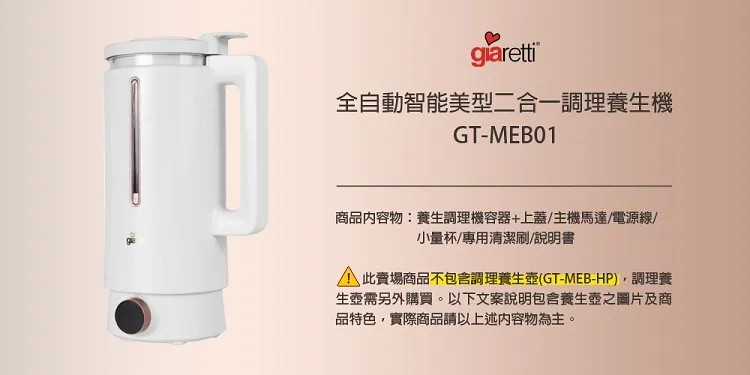 【義大利Giaretti珈樂堤】全自動智能美型二合一調理養生機(GT-MEB01)