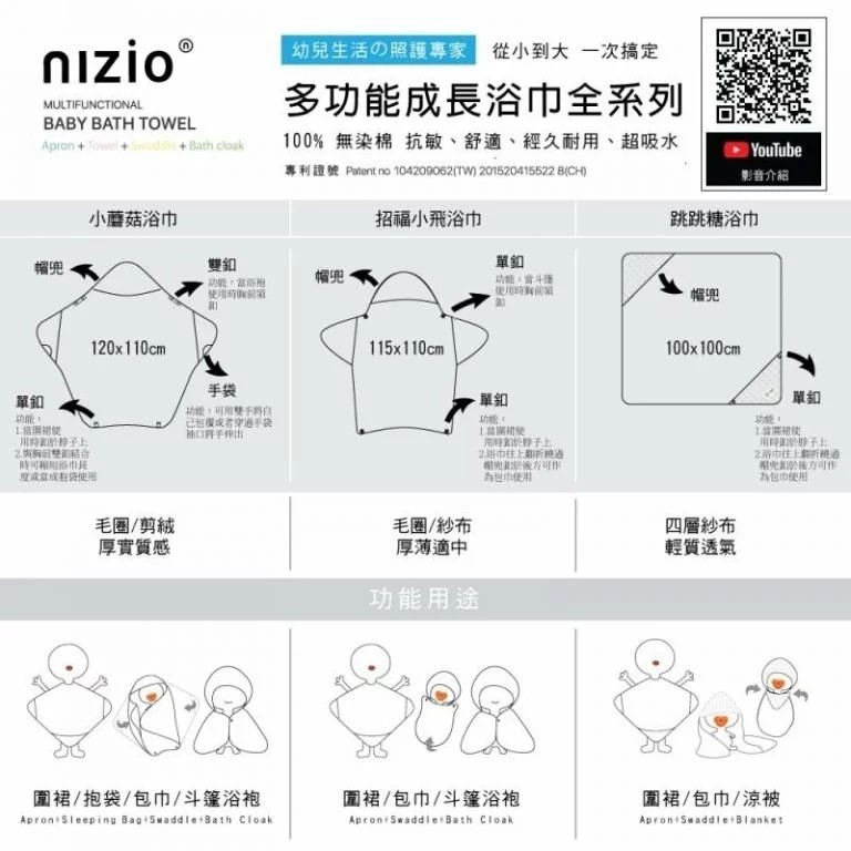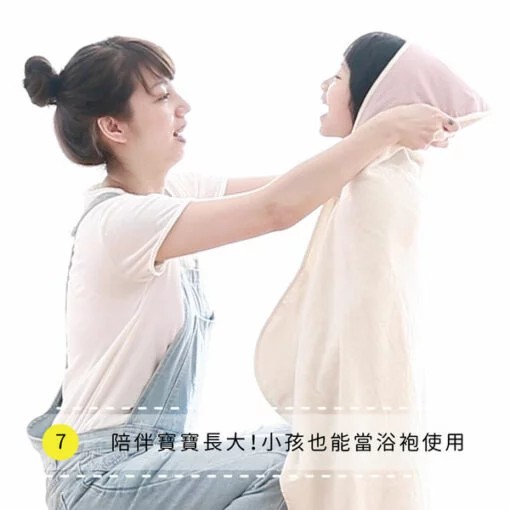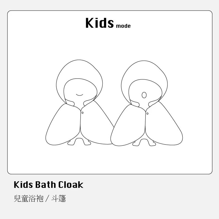 長大後,小蘑菇再度變身,成為浴袍的功能,不論洗完澡或游泳戲水,一路陪伴寶寶成長。