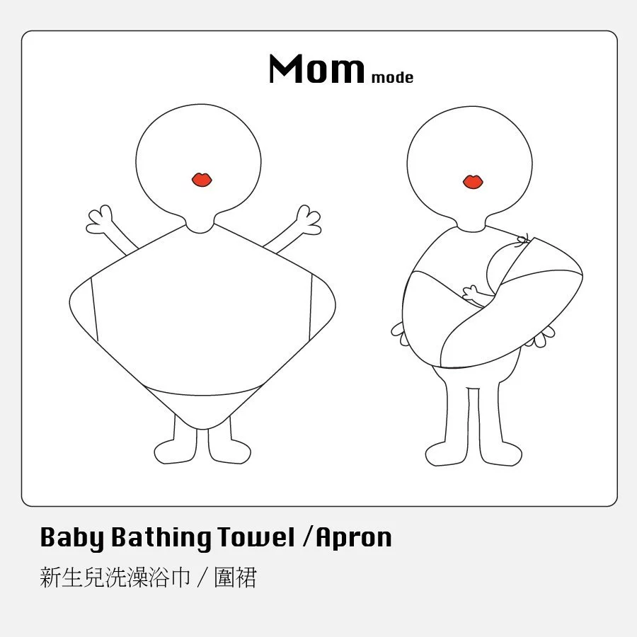 幫新生寶寶洗澡時,將小蘑菇浴巾專利扣環設計扣在脖子後方,幫寶寶洗澡浴巾不離身,不再手忙腳亂。