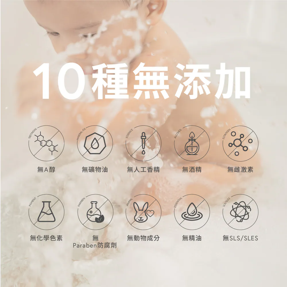 主要成分:甘油、多元醇保濕系統、仿生嬰兒胎脂、APG天然溫和起泡配方