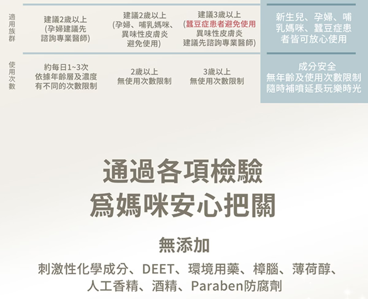 適用族群:0+新生兒、孕婦、哺乳媽咪、蠶豆症患者、一般民眾
