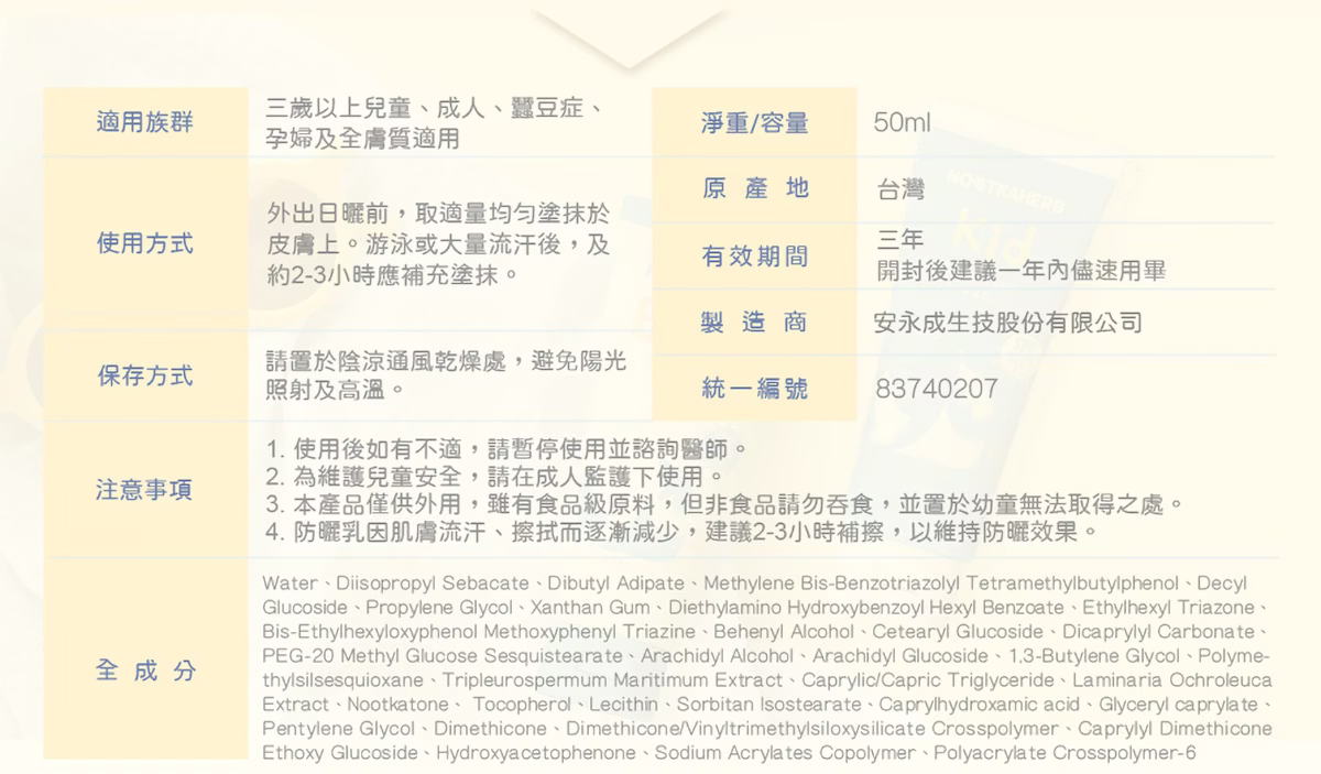 產品名稱:NOOTKAHERB諾卡草本高效防曬乳SPF50