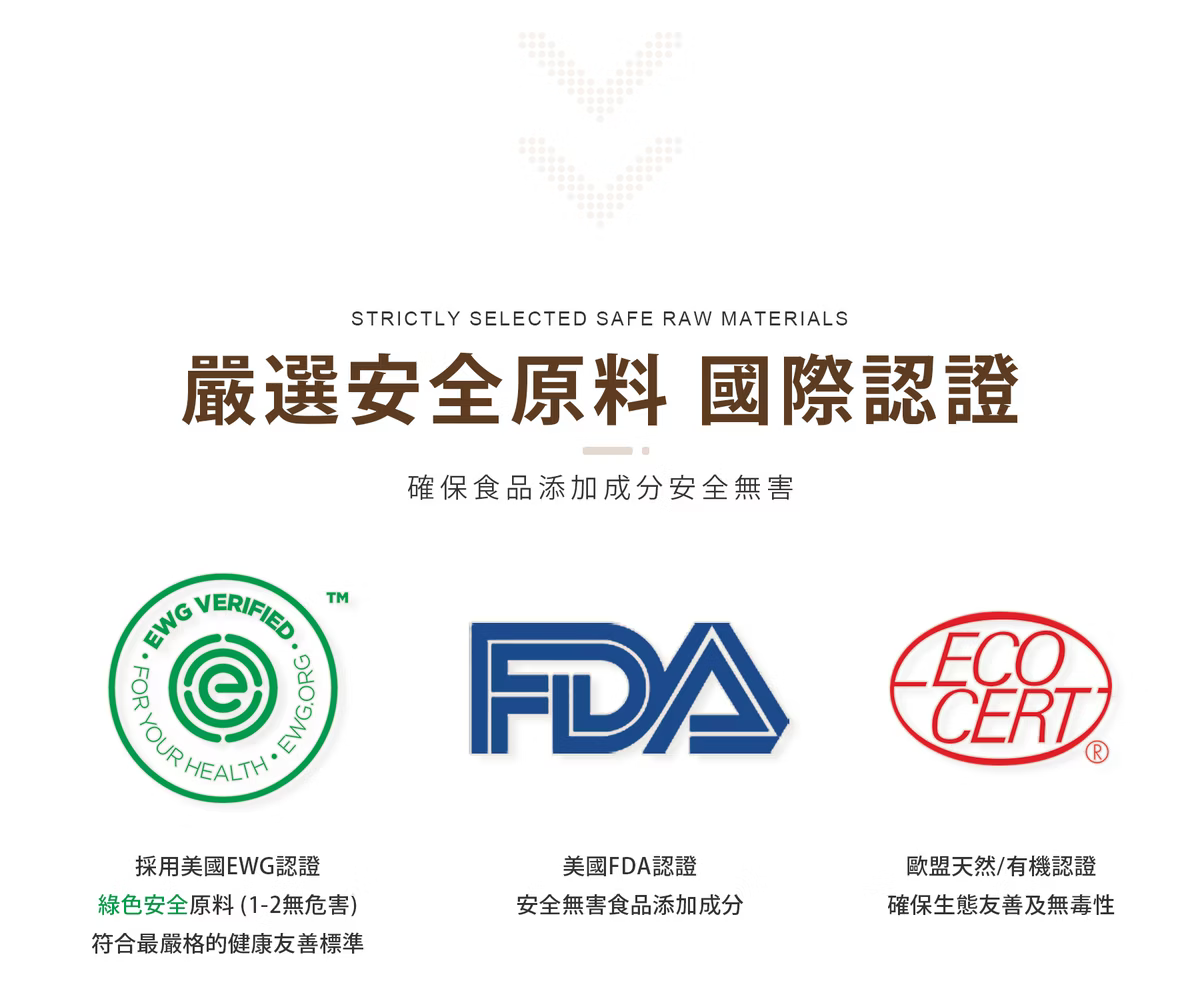 *Ecocert/COSMOS認證  **FDA食品級原料認證**
