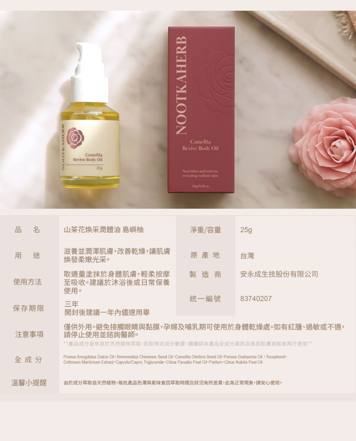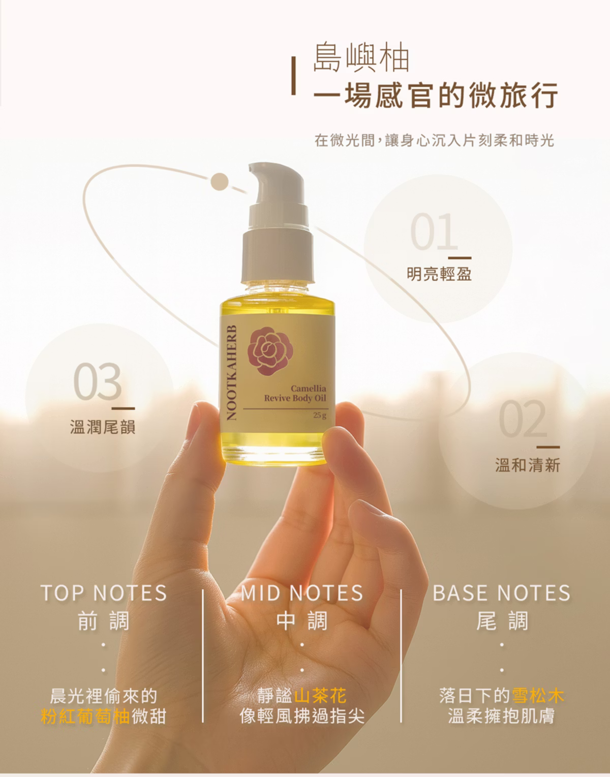 產品名稱:諾卡草本山茶花煥采潤體油-島嶼柚