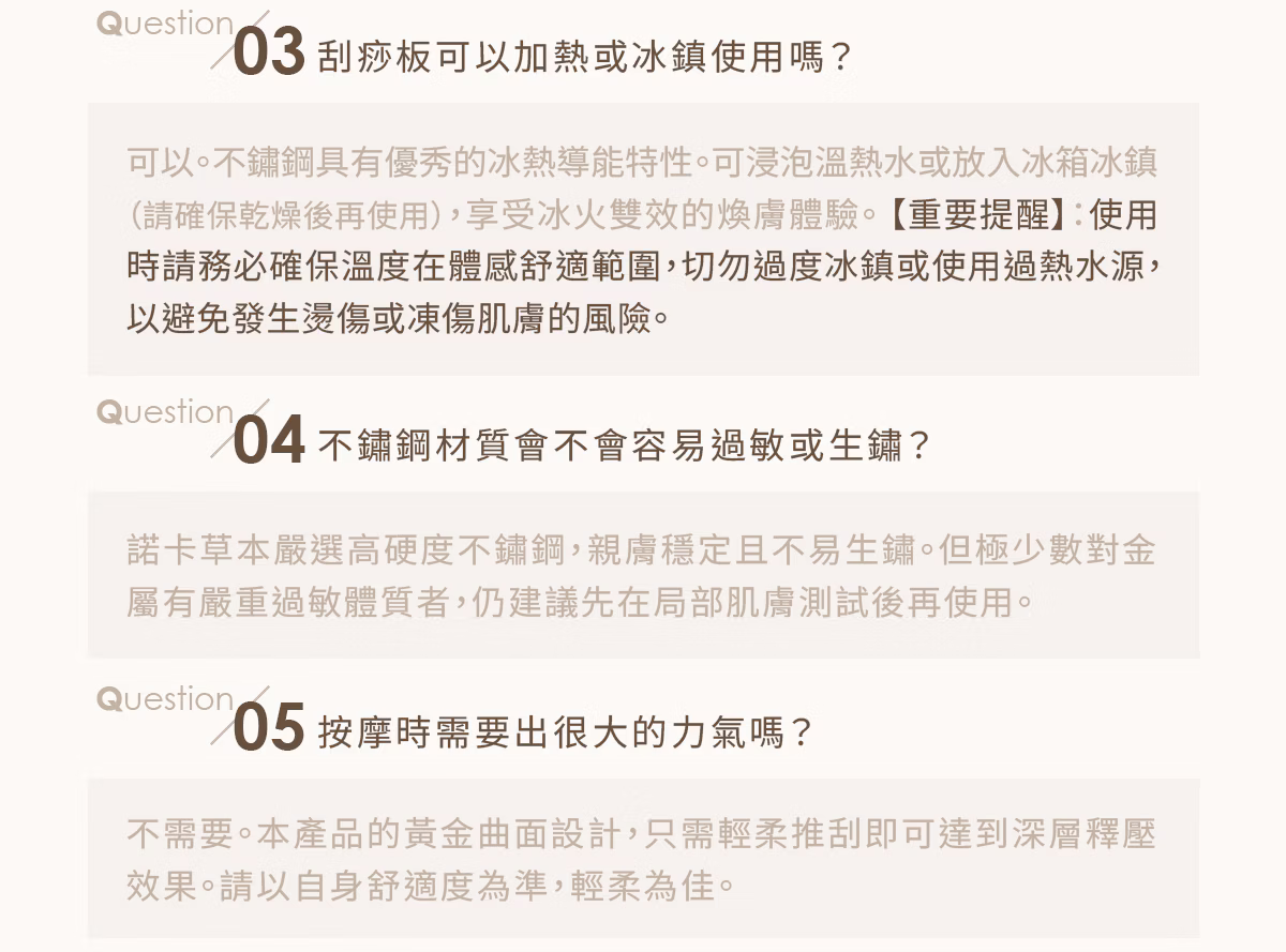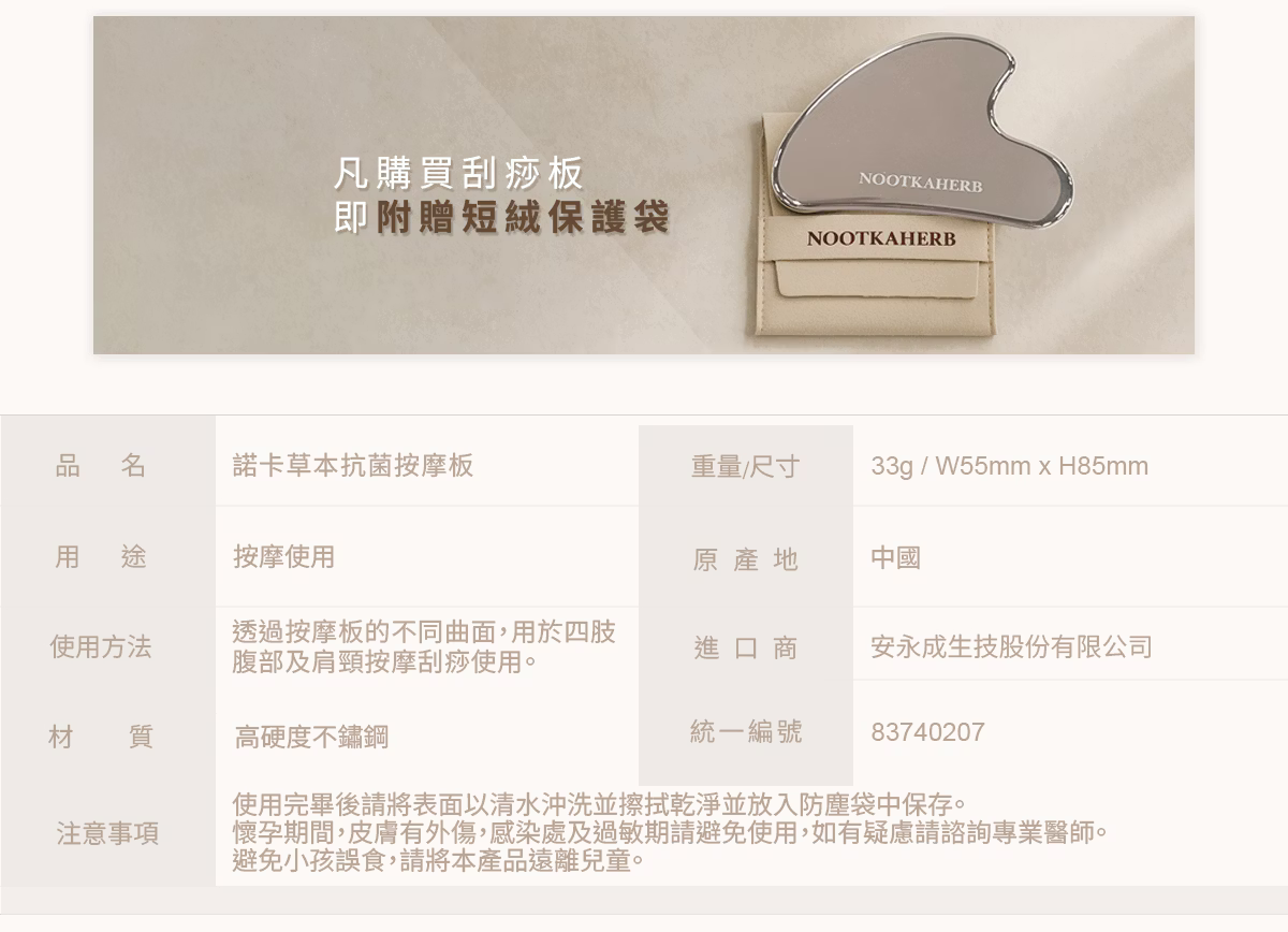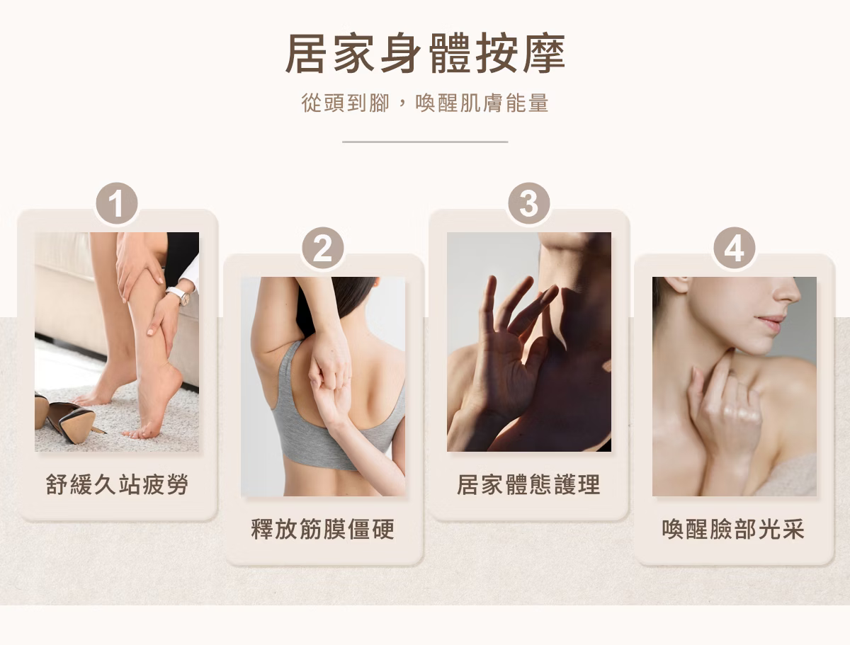 使用方式:透過按摩板的不同曲面,用於四肢,腹部及肩頸按摩刮痧使用。