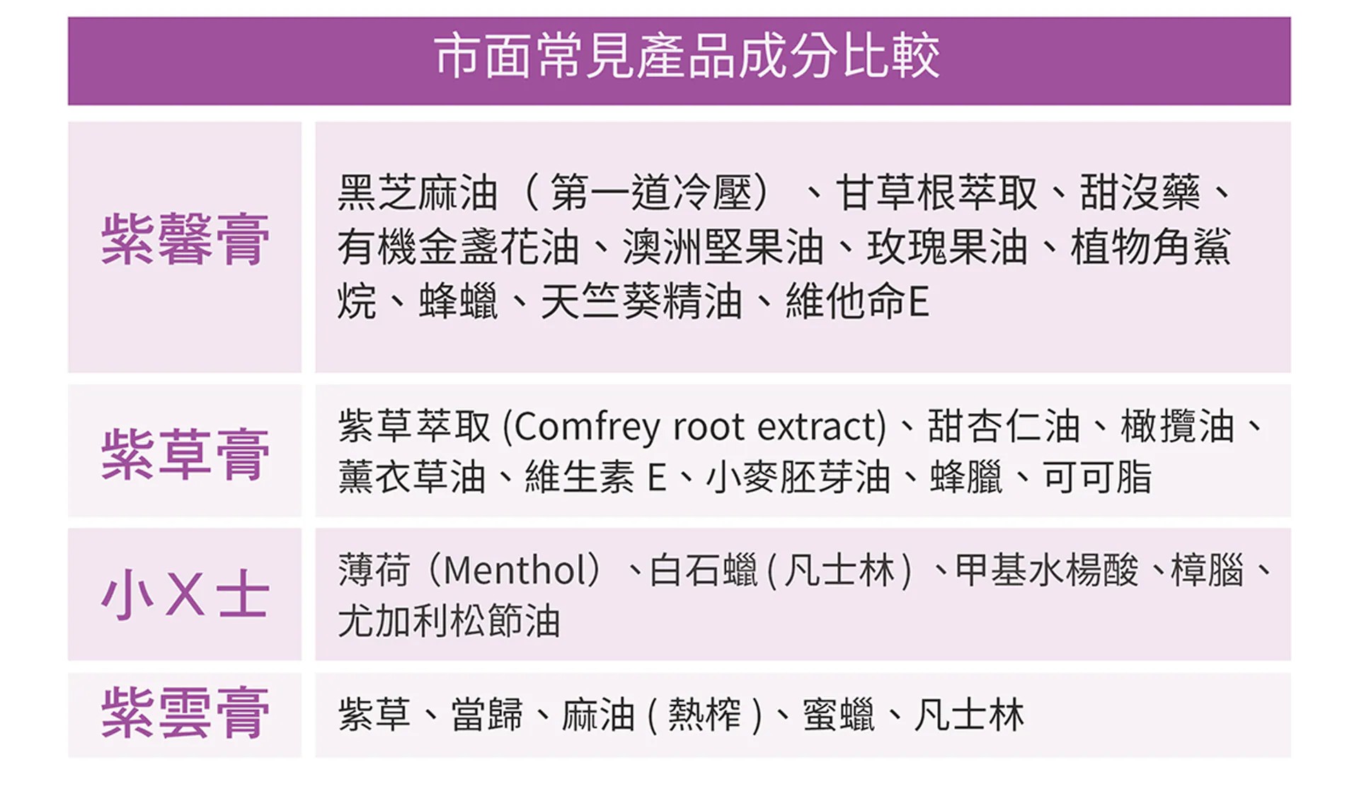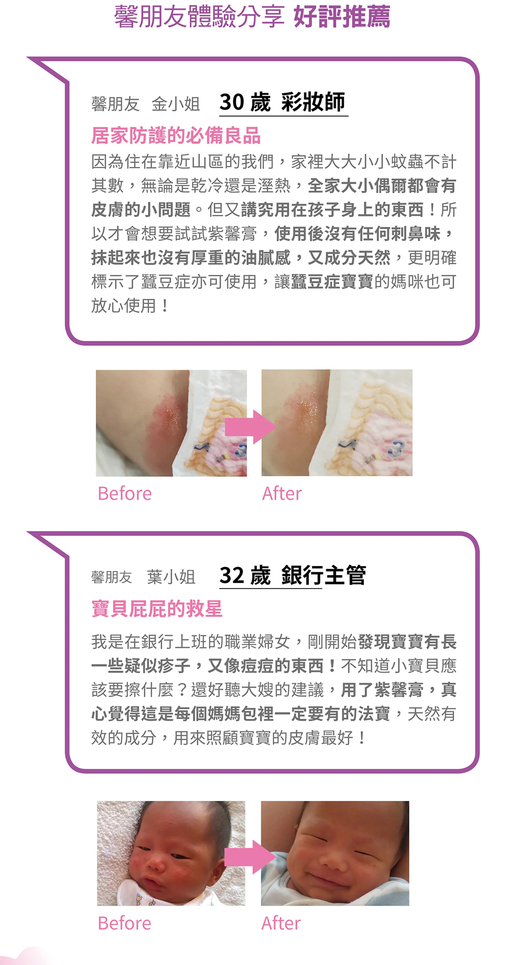 新版紫馨膏提升了黑芝麻油的比例,成分功能、觸感、修護潤澤效果再升級!國內最大月子餐品牌「紫金堂」指定聯名商品!隨時照顧全家人的肌膚,媽媽包裡不可或缺的法寶。