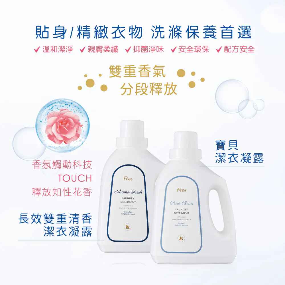 可清洗 寶寶衣物、包巾、口水巾、尿布布套 等貼身用品,成分溫和不殘留,對敏感肌膚友善。