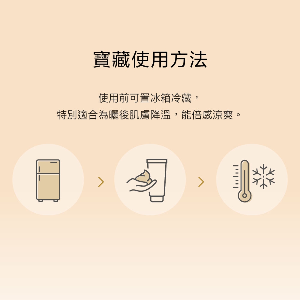 .冷藏使用更沁涼:可放置冰箱冷藏,加強涼感效果,尤其適合曬後或高溫環境下使用,帶來即時舒緩