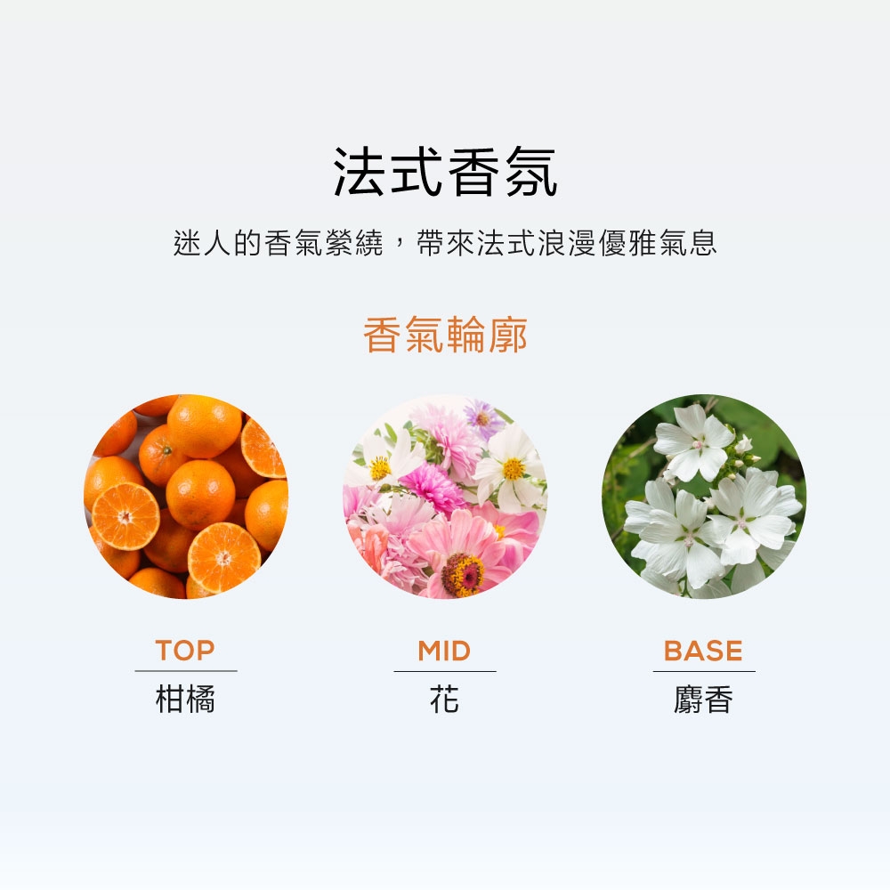 不含Paraben類防腐劑、類固醇,無動物實驗,留下持久優雅香氣的安心沐浴體驗