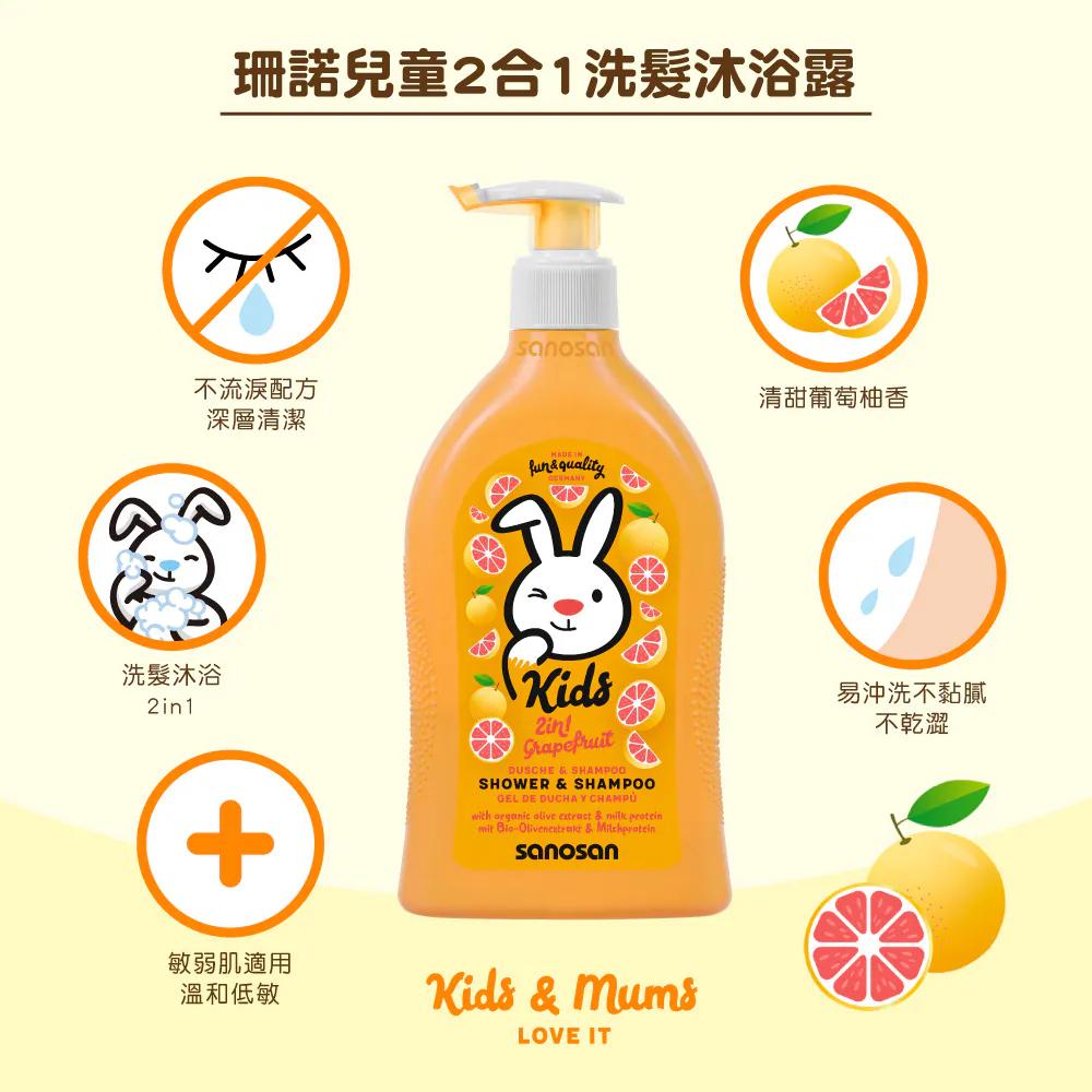 德國珊諾sanosan 兒童2合1洗髮沐浴露(葡萄柚香)