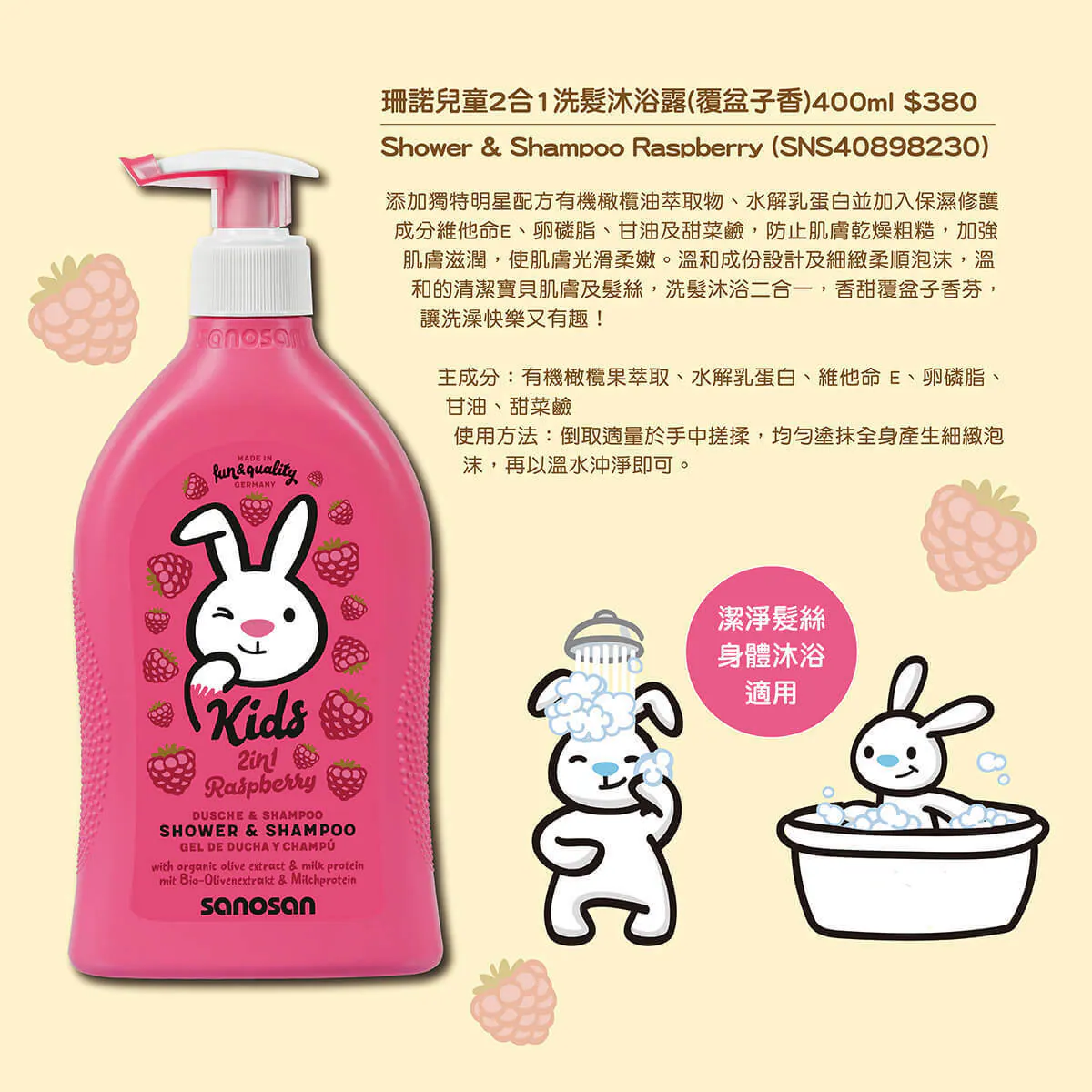 德國珊諾sanosan 兒童2合1洗髮沐浴露(覆盆子香)