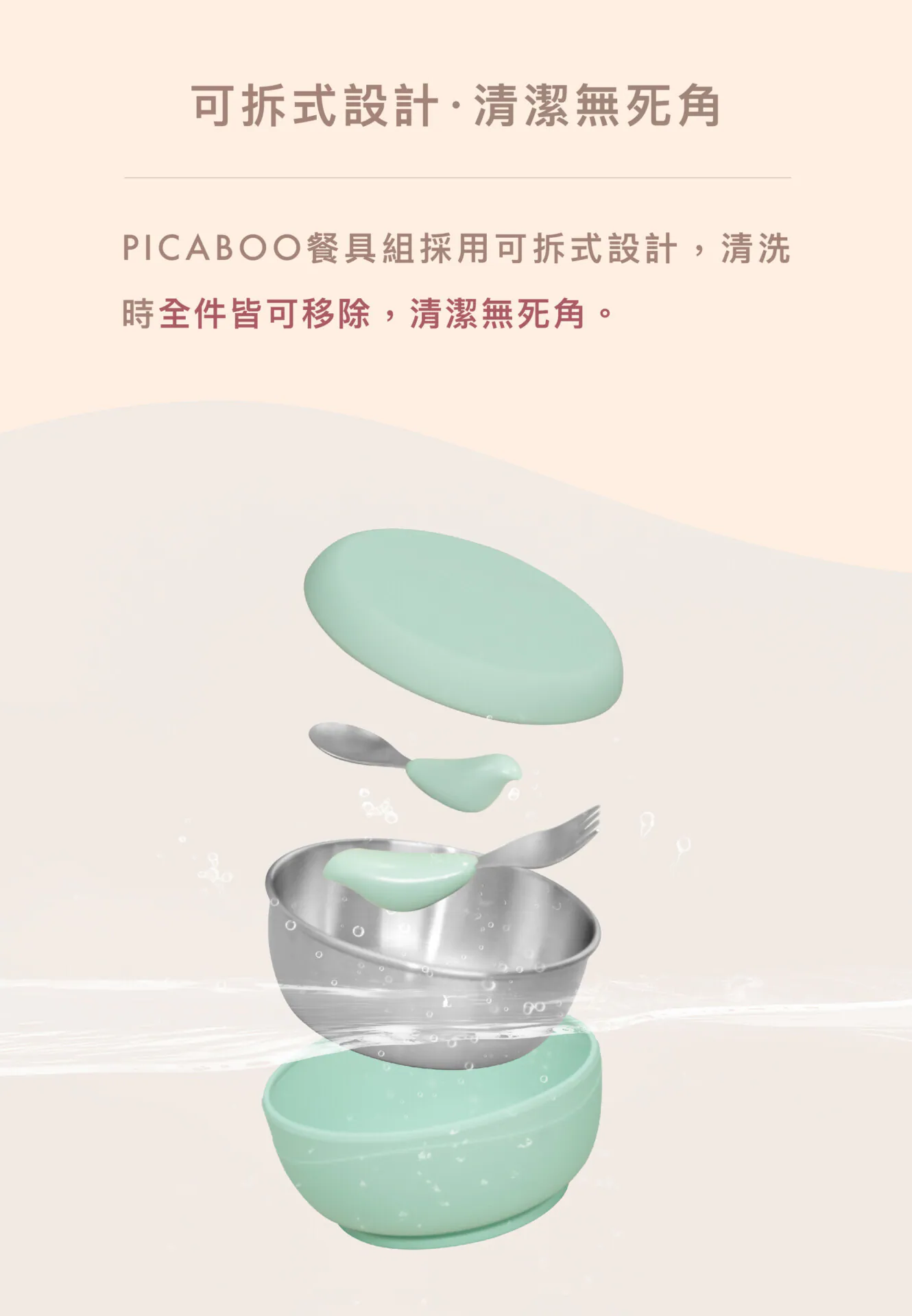 設計出6大巧思的PICABOO兒童餐具組,縮短學習過程中的陣痛期,幫助孩子更快上手。