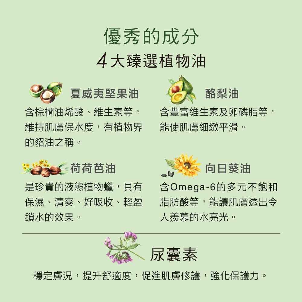 .荷荷芭油:是珍貴的液態蠟,質地輕盈鎖水。