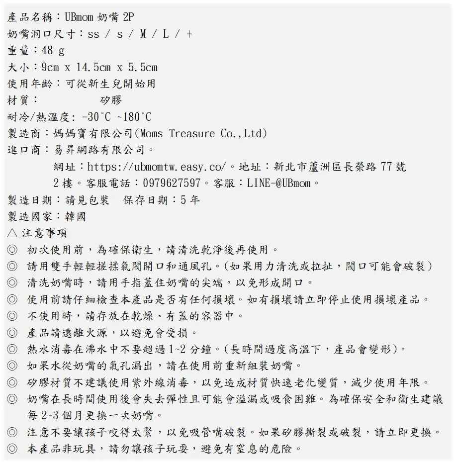 UBMOM 奶瓶奶嘴2P