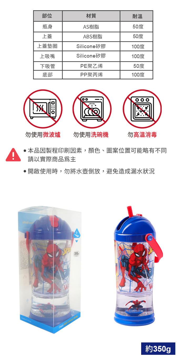 SuperBO 提把吸管水壺310ml 蜘蛛人
