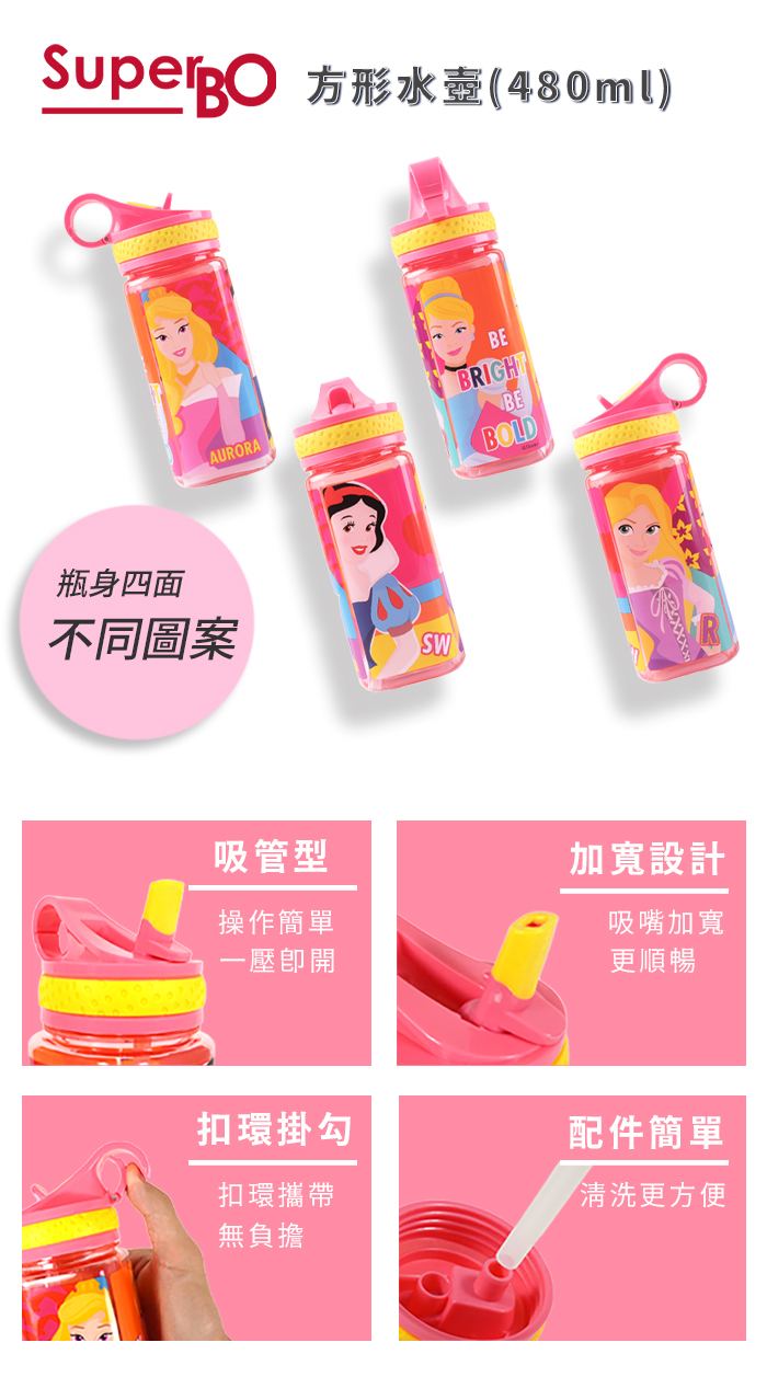 SuperBO 方形水壺480ml 迪士尼公主