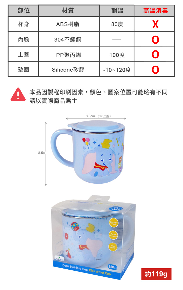 ●不鏽鋼內膽可單獨拆卸高溫消毒。杯身請勿使用洗碗機、紫外線消毒鍋及煮沸等方式消毒,可能會導致產品變形或圖案剝落。