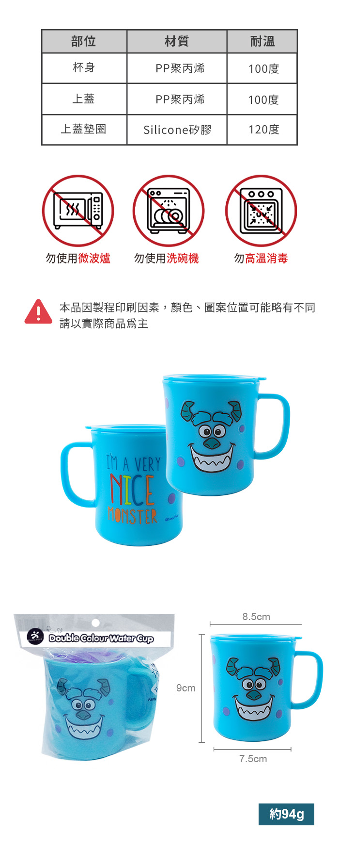 ●請勿高溫消毒,勿使用洗碗機及紫外線消毒鍋,可能會導致產品變形或圖案剝落。