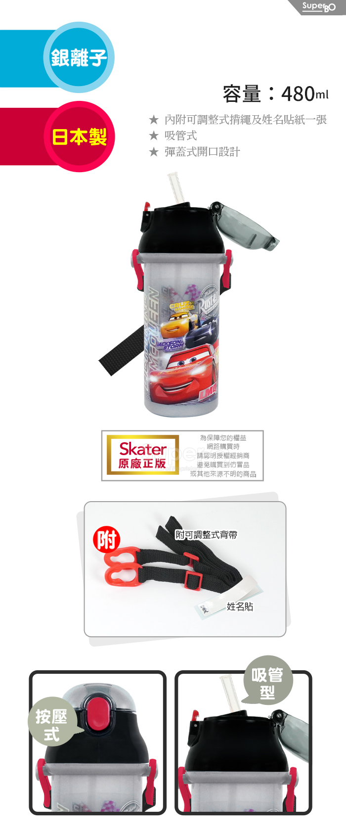 Skater 吸管銀離子水壺480ml 閃電麥坤LMQ