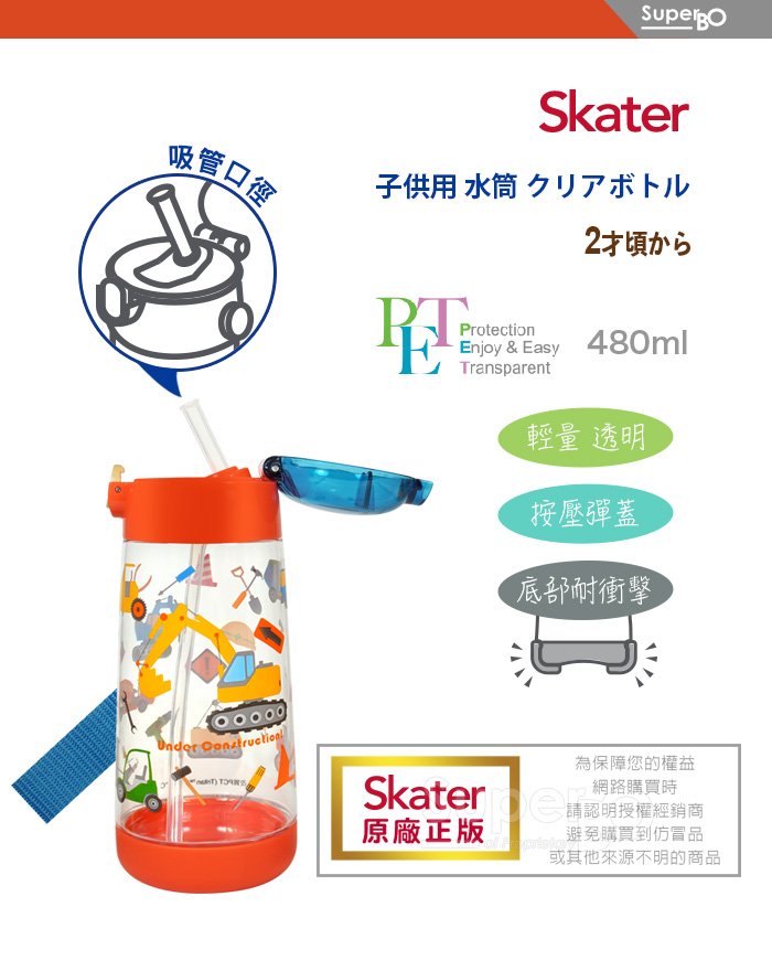 Skater PET吸管水壺480ml 工程車