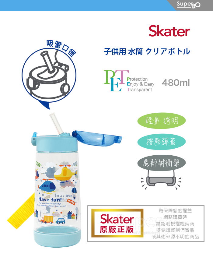 Skater PET吸管水壺480ml 直升機