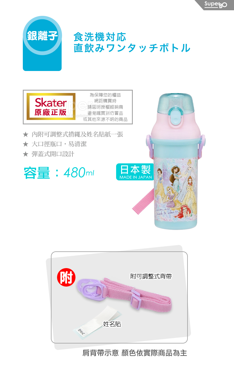 Skater 銀離子直飲水壺480ml 迪士尼公主Share
