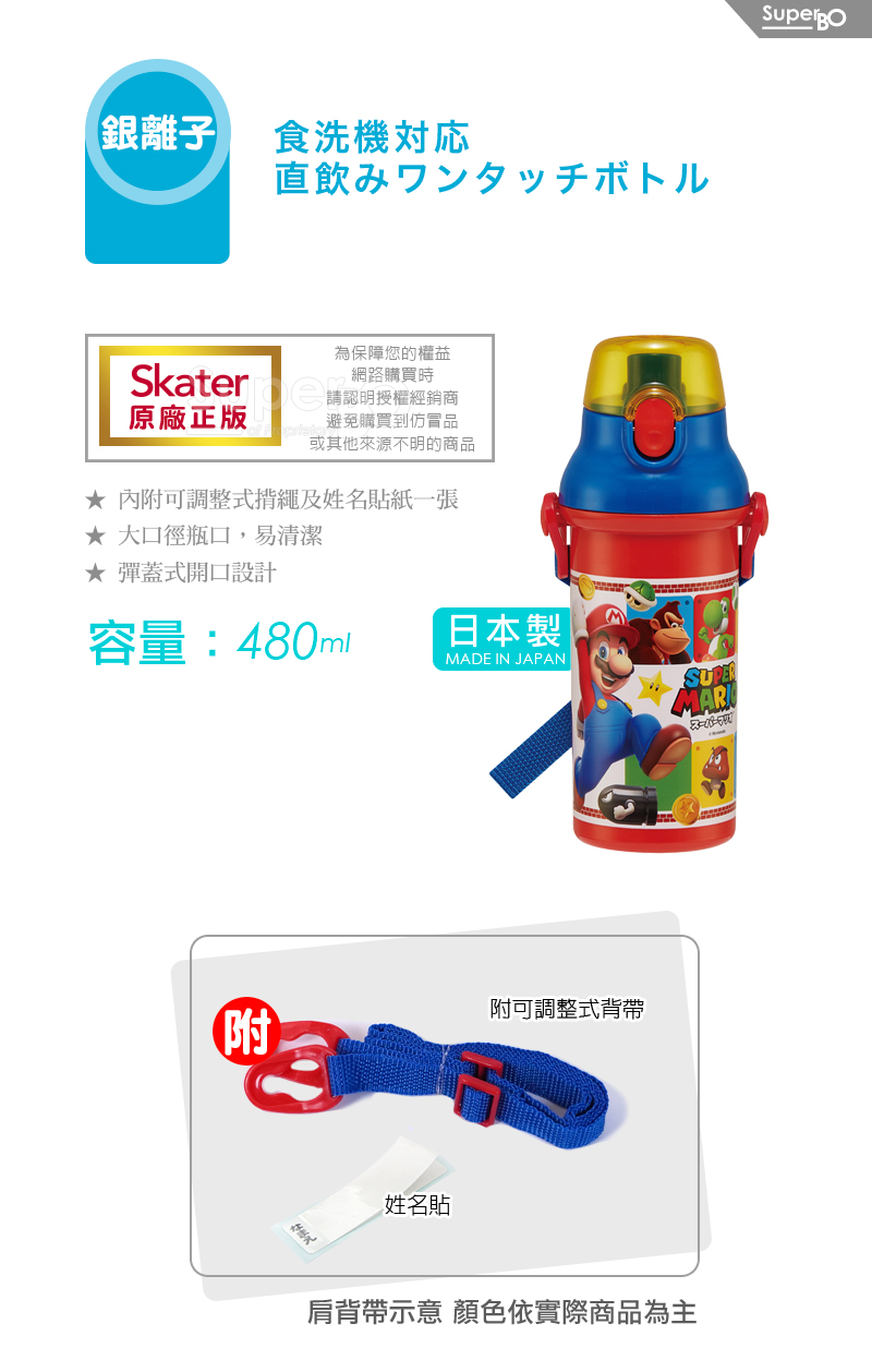 Skater 銀離子直飲水壺480ml 瑪利歐
