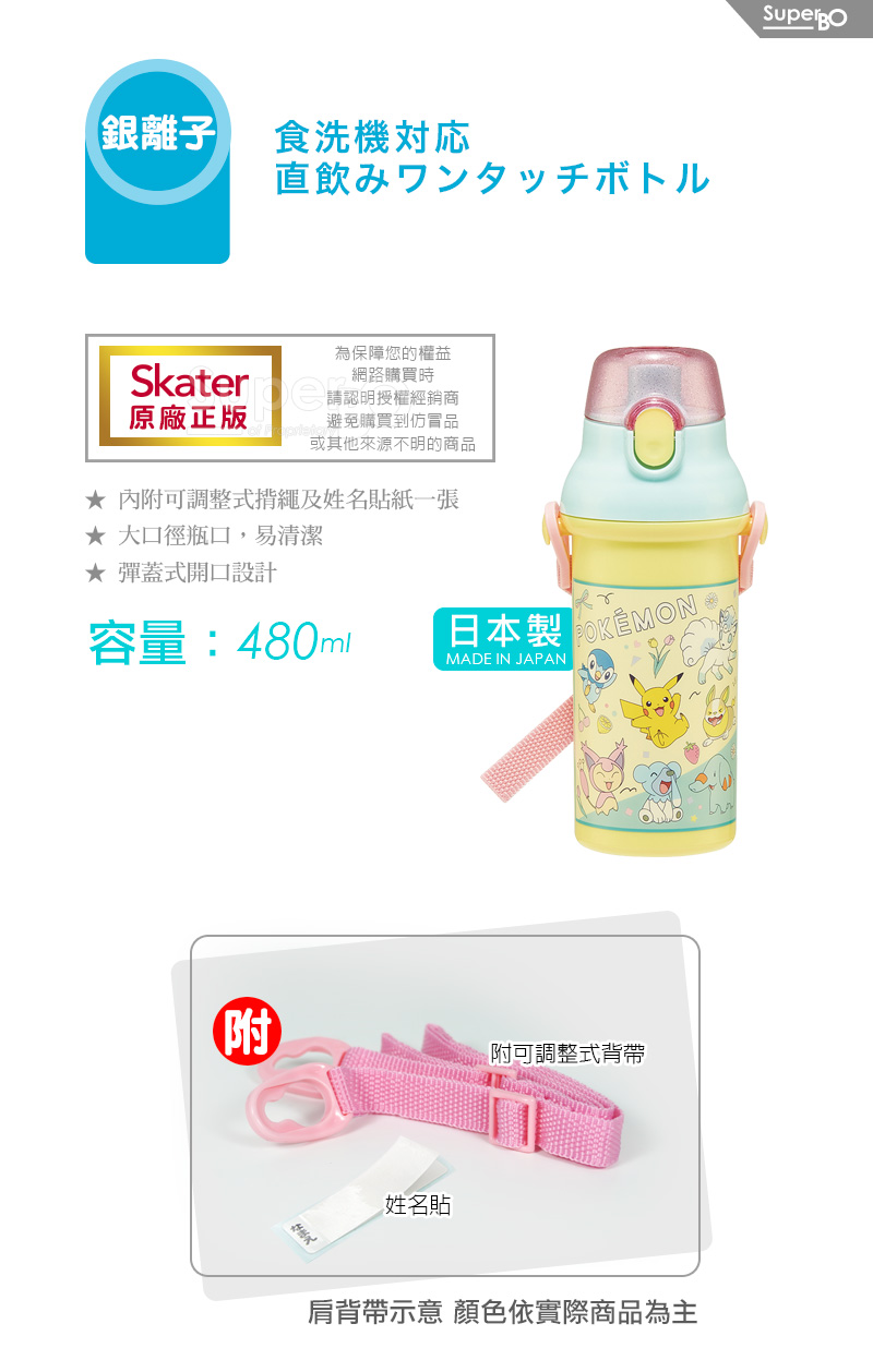 Skater 銀離子直飲水壺480ml 寶可夢RETRO