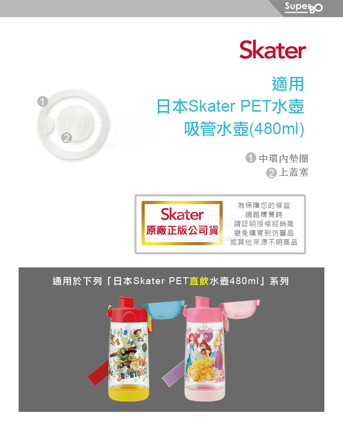 1.請注意: 只適用於Skater PET水壺480ml系列。