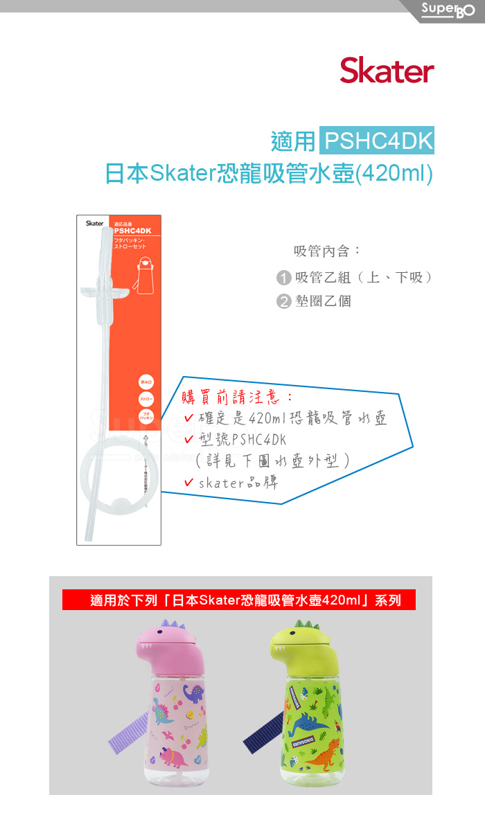 1.請注意: 只適用於Skater 恐龍吸管水壺(420ml)系列。