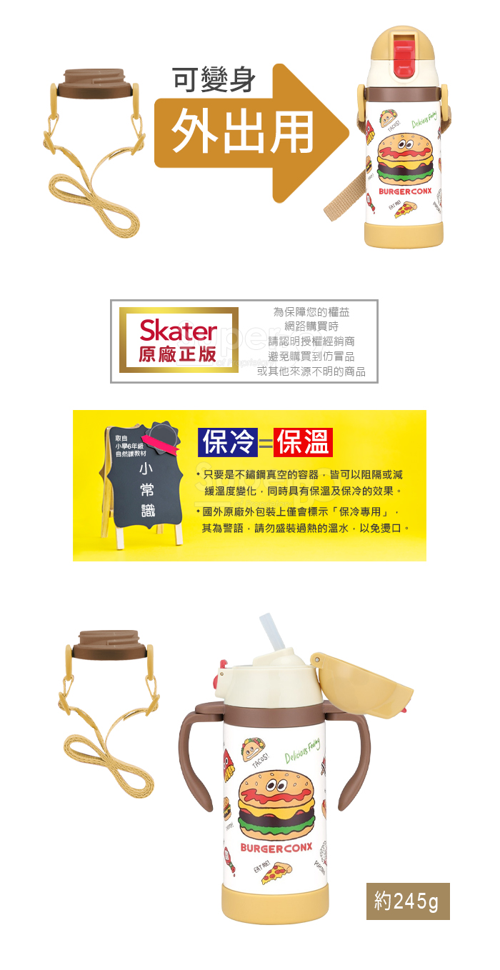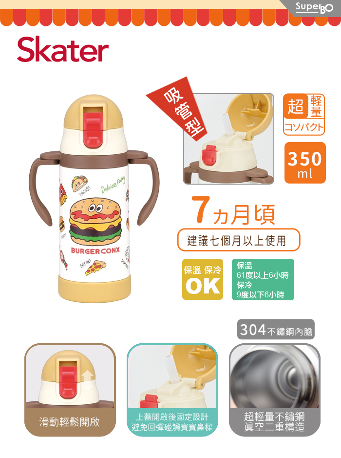 Skater 吸管型不鏽鋼兩用杯350ml 漢堡