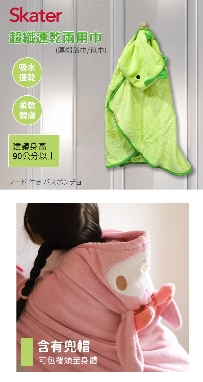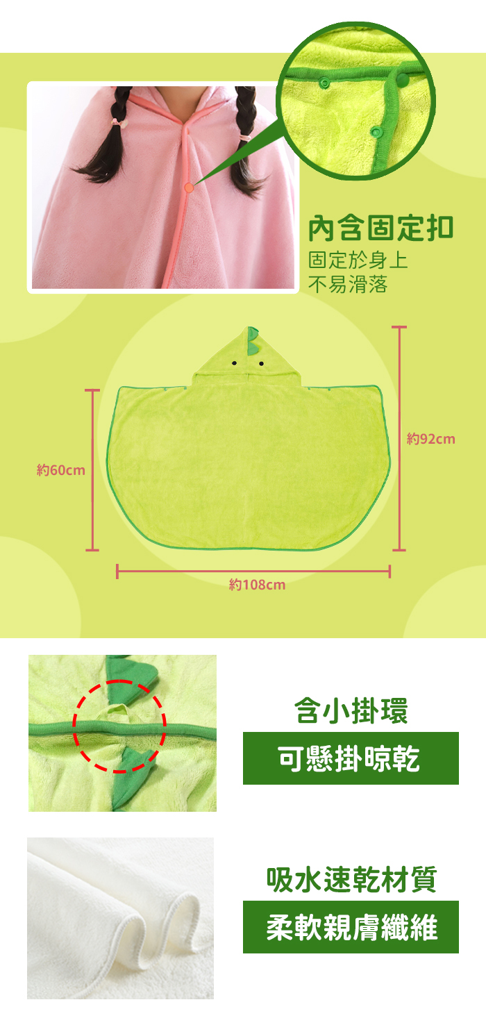 ◆含有兜帽,可將頭至身體包覆住,亦可做兒童包巾。