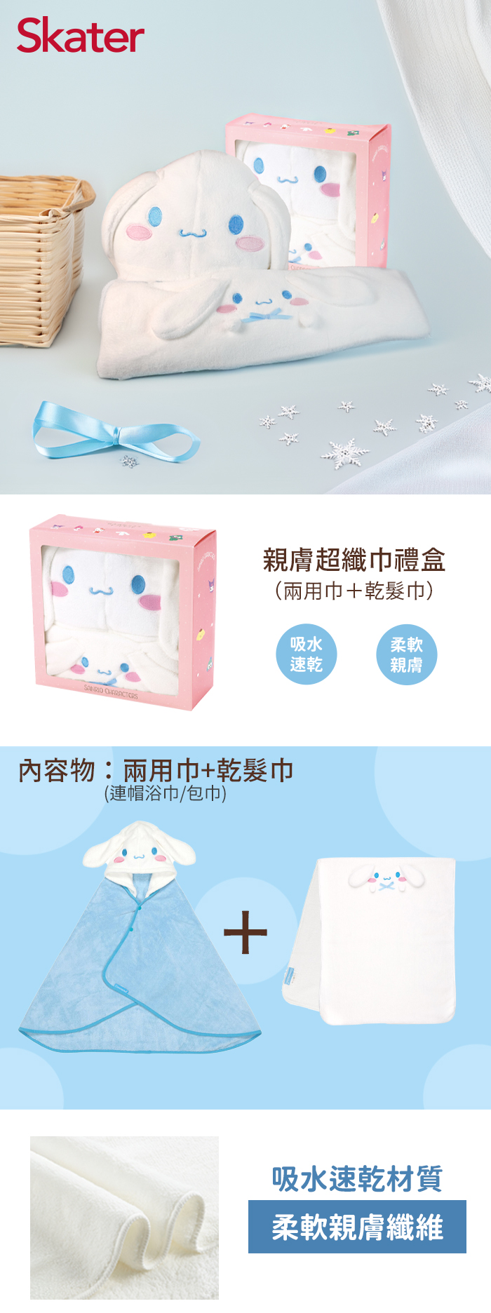 Skater 親膚超纖巾禮盒(兩用巾+乾髮巾) 大耳狗