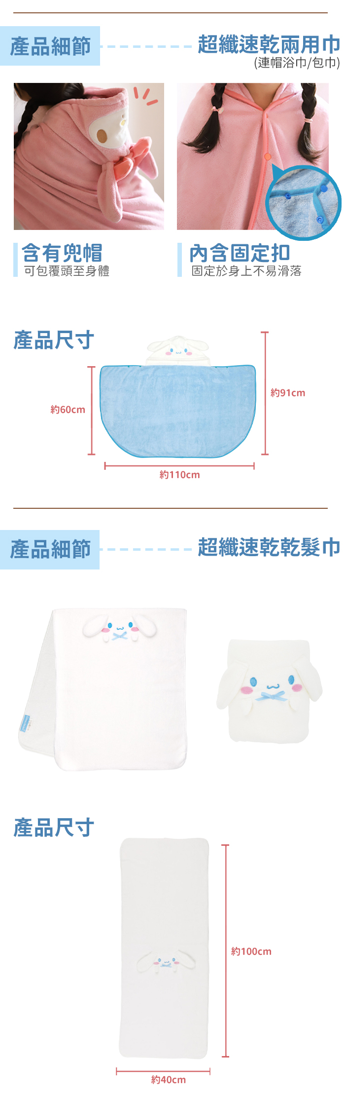 ◆可愛造型乾髮巾+兩用巾。