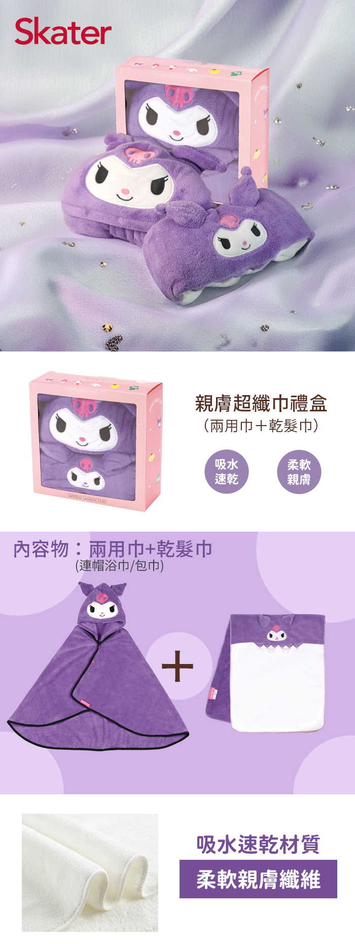 Skater 親膚超纖巾禮盒(兩用巾+乾髮巾) 酷洛米