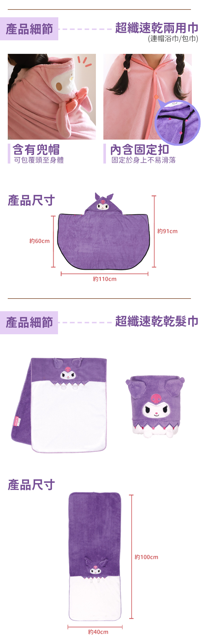 ◆可愛造型乾髮巾+兩用巾。