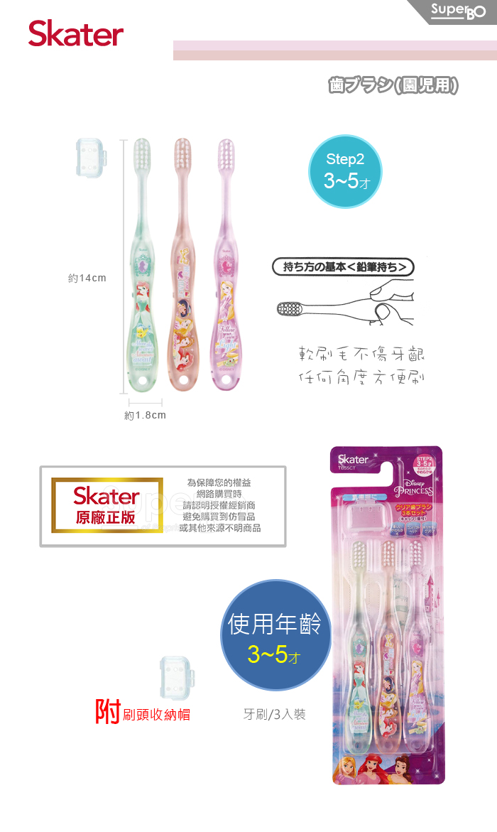 Skater 兒童牙刷(3-5歲)3入組 Jelly迪士尼公主