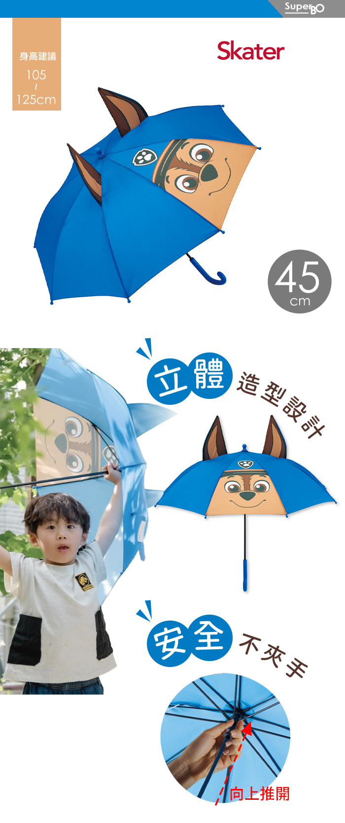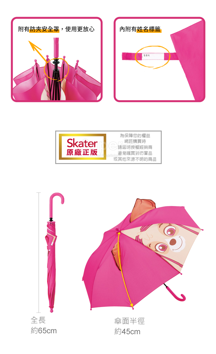 Skater 立體兒童傘(45cm) 汪汪隊(粉/藍)