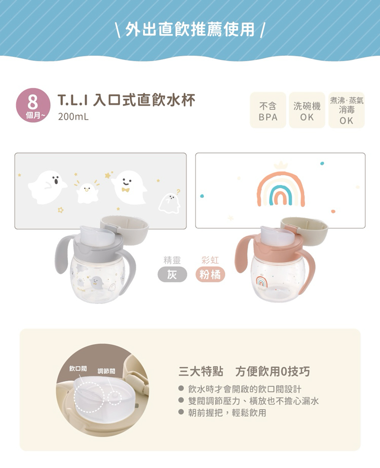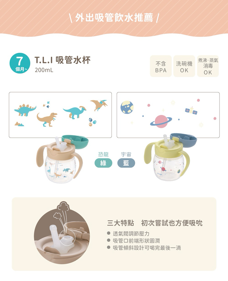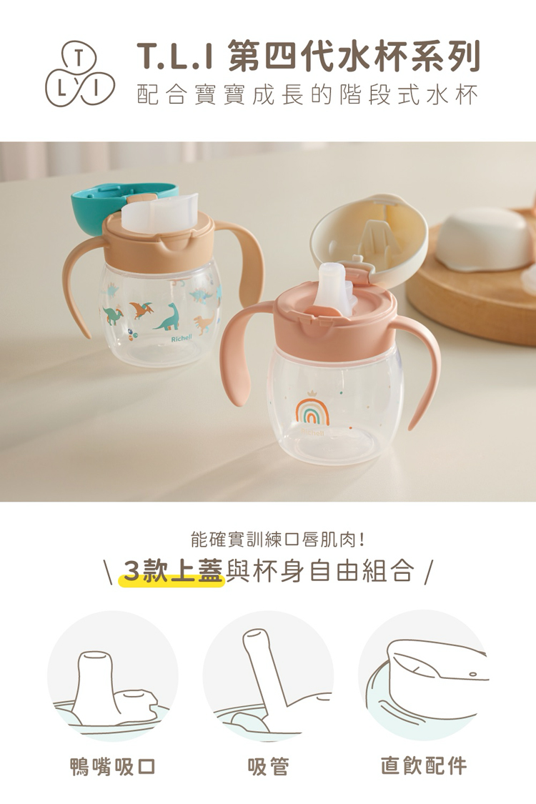 Richell 利其爾 TLI第四代二階段替換吸管水杯組200ml(鴨嘴/吸管)