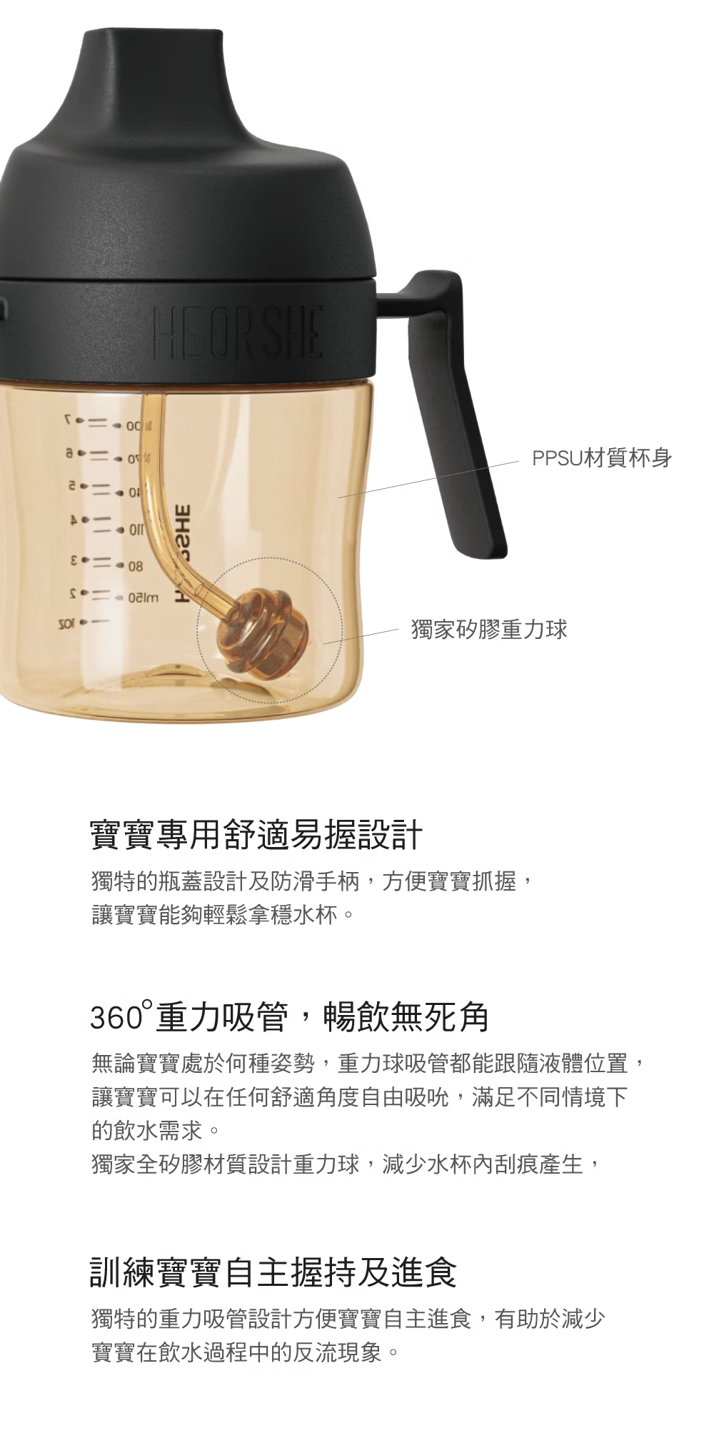 商品名稱:學習水杯吸管組商品尺寸:3.2x2.2x15.5cm商品材質:矽膠(吸管) / SUS304(重力球)耐熱溫度: -20°C~180°C商品產地:中國【奶嘴說明】Stage1吸管組:適合210ml水杯使用Stage2吸管組:適合300ml水杯使用