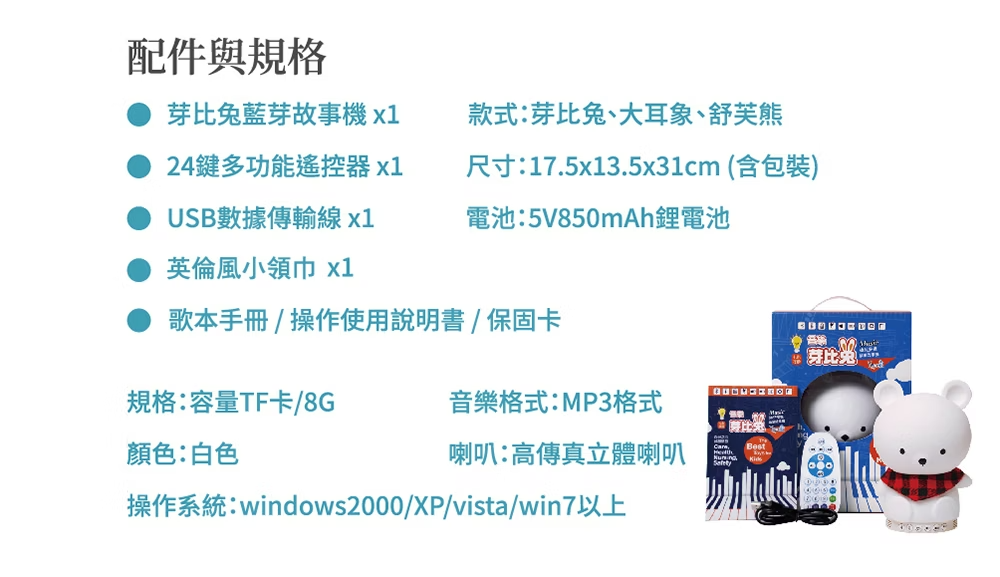 藍芽芽比兔啟蒙教育故事機部分音檔試聽片段: