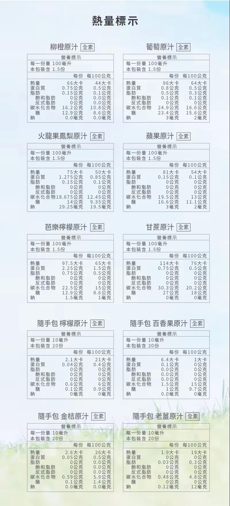 注意事項:本產品為天然水果鮮榨,若有沈澱及顏色變深,乃為自然現象,請搖勻後安心飲用。